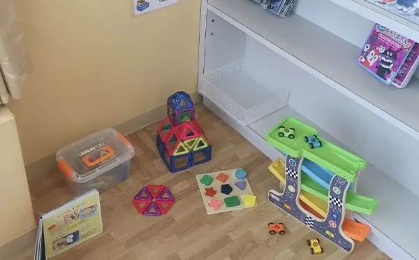 お子さまが待ち時間も楽しく過ごせるキッズスペースを設けています。保護者の方の治療中はスタッフがお子さまを見守りますので、安心して診療をお受けいただけます。