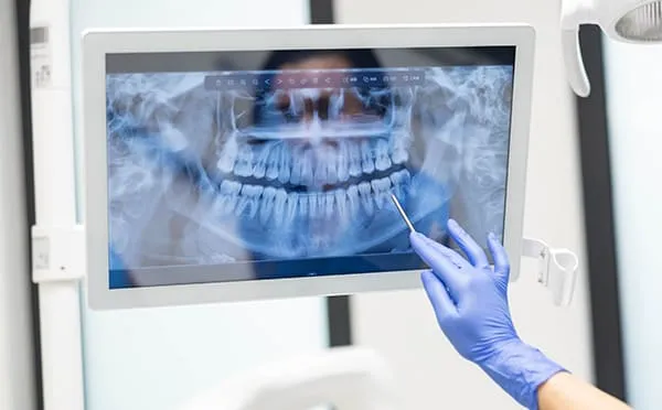 歯や顎の状態を把握するためにレントゲン撮影を行います。目視では確認できない内部の状態を画像で確認し、診断や治療計画の立案に利用します。必要な範囲を適切に撮影し、患者さまにわかりやすくご説明します。