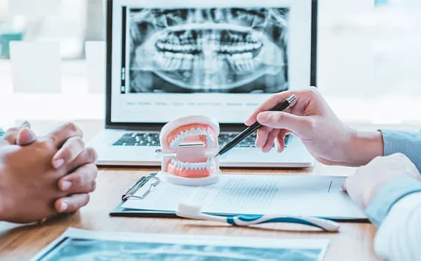口腔内写真やレントゲン撮影を行い、歯や顎の状態を客観的に確認します。必要に応じて歯科用CTを撮影し、顎の骨の形や永久歯の位置を立体的に把握します。