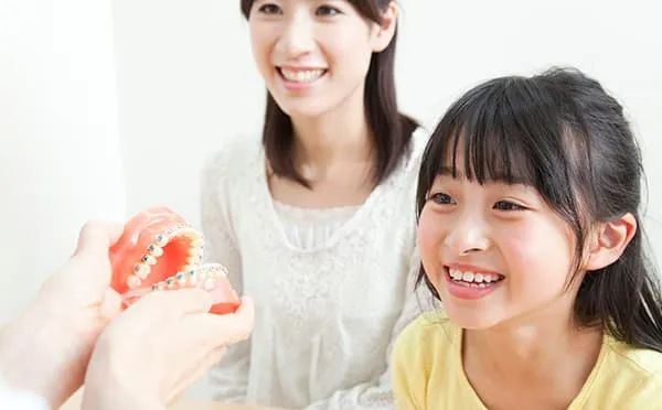 成長期のお子さまは顎や歯の発育が続くため、定期的に経過を確認します。装置の調整や噛み合わせのチェックを行い、成長の変化に合わせて治療を進めます。